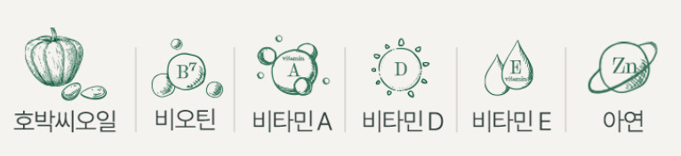오스트리아산 유기농 호박씨 오일이 주성분으로, 1,000mg이 포함되어 있습니다. 이 오일은 모발에 필요한 필수 지방산을 풍부하게 함유하고 있어 두피의 건강을 지원합니다. 호박씨 오일은 항염 및 항산화 효과가 뛰어나, 두피의 염증을 줄이고 건강한 모발 성장을 촉진하는 데 중요한 역할을 합니다.