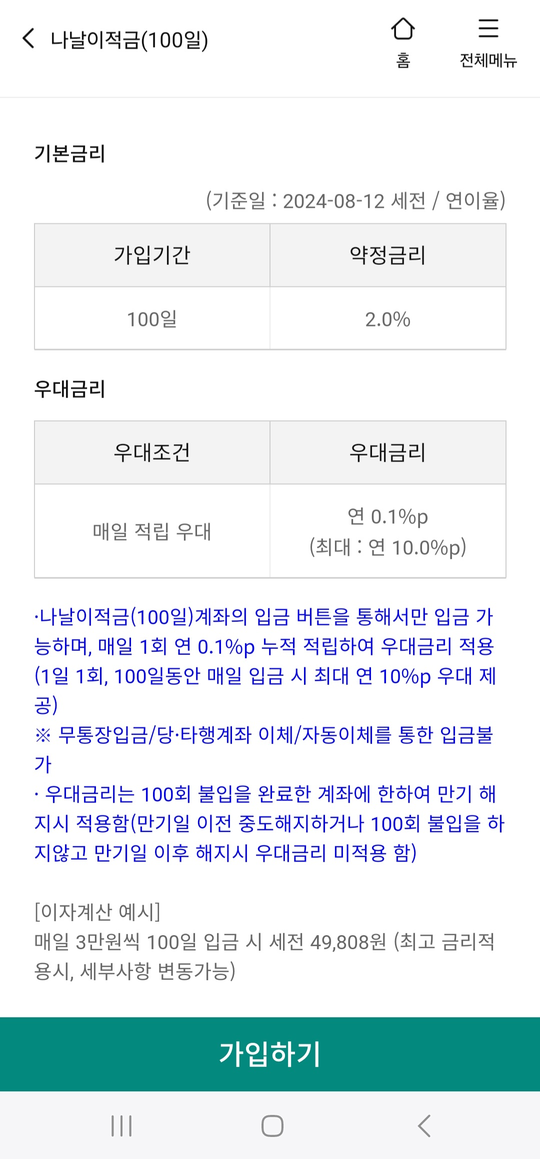 나날이적금 가입 방법